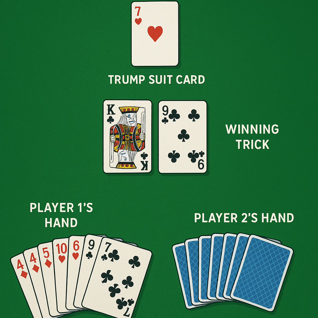 - Play cards in turns, aiming to win tricks.